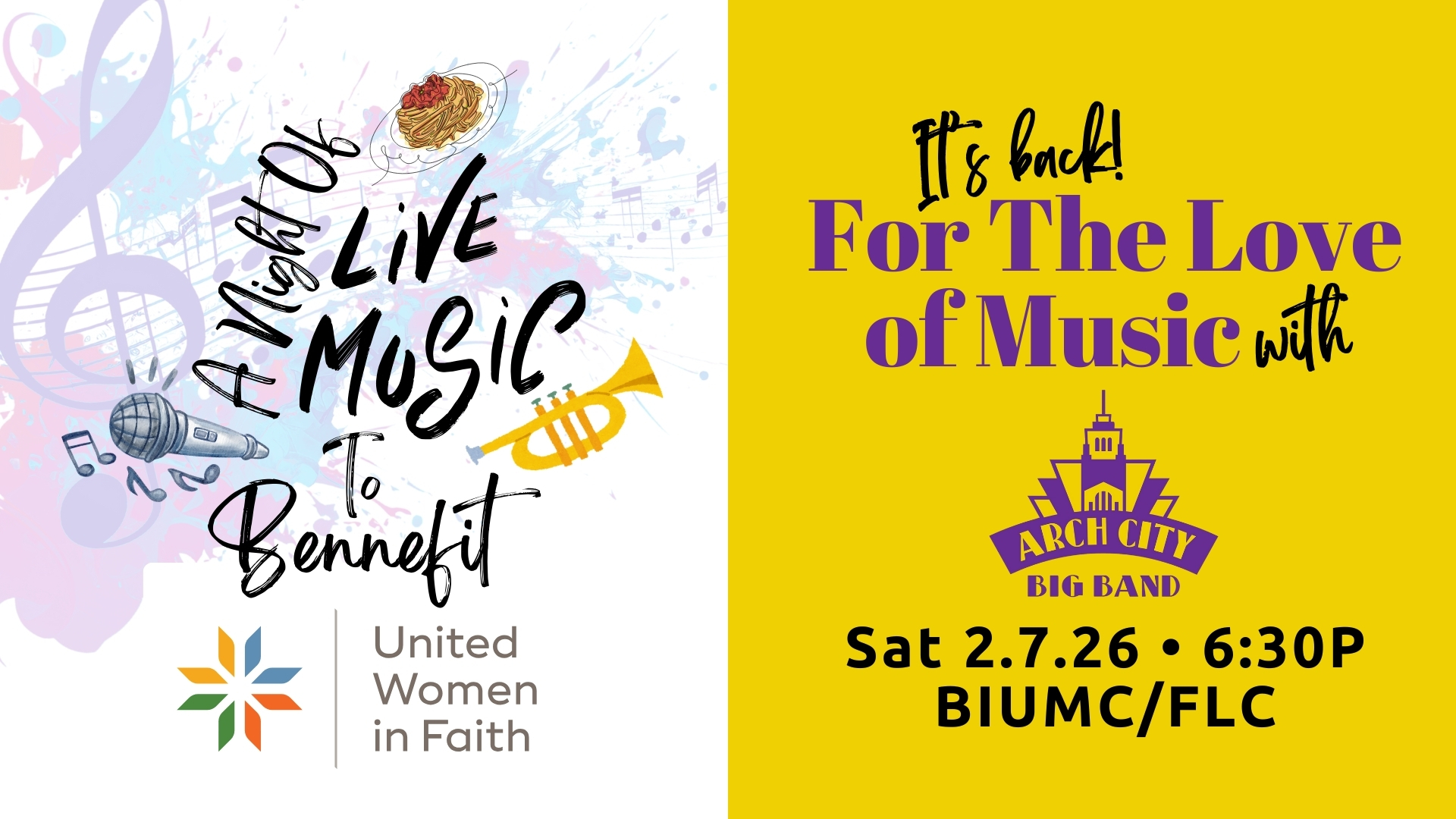 The 4th annual jazz dinner, "For the Love of Music", will take place on Saturday, February 7, at 6:30 PM in the Family Life Center. The evening will include a pasta buffet dinner and music by the Arch City Big Band. Tickets are available on our website starting today and tickets will be available in-person after the church services on January 25 and February 1. All proceeds will benefit the mission work of the United Women In Faith.